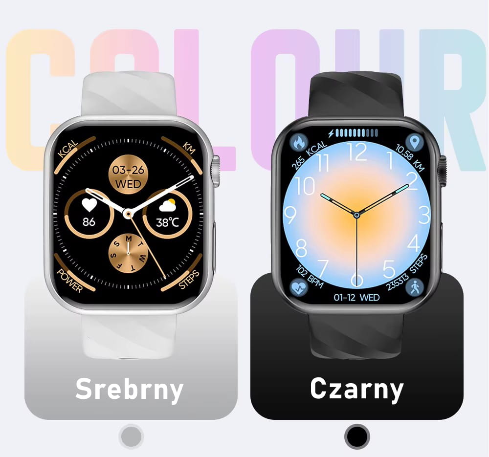 - Personalizacja ekranu: 7 wbudowanych tarcz oraz kilkadziesiąt dodatkowych w aplikacji, a także możliwość ustawienia własnego zdjęcia,