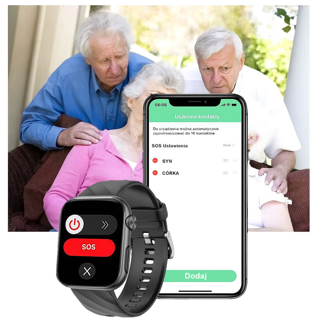 - Funkcja SOS do szybkiego wzywania pomocy,