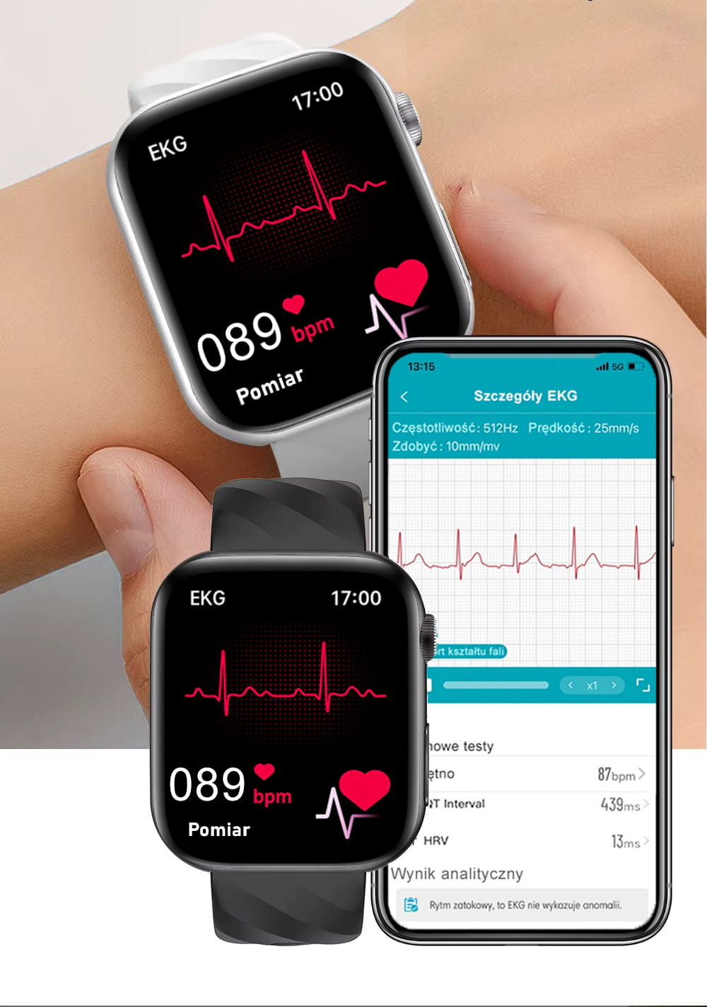 Zegarki z EKG pozwalają na szybkie monitorowanie rytmu serca bezpośrednio z nadgarstka. Dzięki funkcji rejestrowania elektrokardiogramu (EKG) w czasie rzeczywistym możesz śledzić nieregularności rytmu serca oraz kontrolować parametry sercowe podczas codziennej aktywności i treningów. Wszystkie wyniki są automatycznie zapisywane w dedykowanej aplikacji na smartfonie, co zapewnia pełny wgląd w historię pomiarów. To idealne rozwiązanie dla osób aktywnych i dbających o zdrowie serca, które chcą wygodnie monitorować pracę serca w każdym momencie dnia.