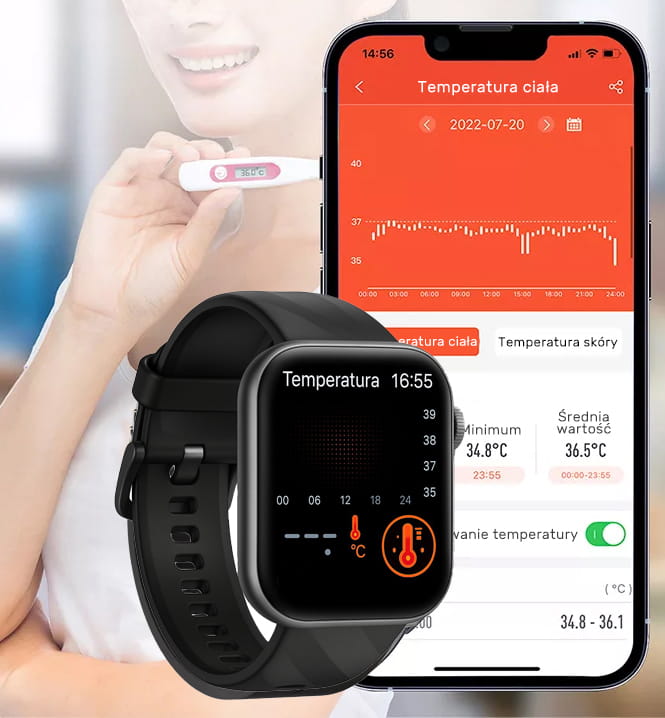 Zegarek z pomiarem temperatury wykorzystuje nowoczesne czujniki termiczne umieszczone od spodu koperty, które pozostają w bezpośrednim kontakcie ze skórą. Dzięki nim smartwatch monitorujący temperaturę ciała analizuje zmiany w czasie rzeczywistym, łącząc dane ze skóry z informacjami o temperaturze otoczenia i przepływie krwi.