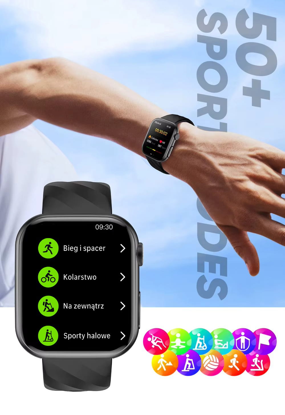 - Kilkanaście trybów sportowych do monitorowania aktywności fizycznej,