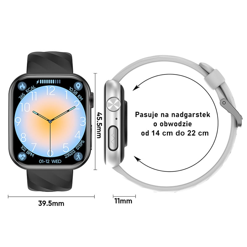 Smartwatch z wyświetlaczem AMOLED HD oferuje duży, kolorowy ekran o przekątnej 1,97 cala i rozdzielczości 390x450 pikseli, który w pełni obsługuje dotyk dzięki technologii FULL TOUCH. Cała powierzchnia ekranu reaguje na dotyk, co zapewnia wygodną i intuicyjną obsługę wszystkich funkcji zegarka.